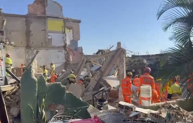 Vídeos divulgados pelo Corpo de Bombeiros mostram a operação de resgate nos escombros de um prédio onde funcionava um lar de idosos em Belo Horizonte (MG). A edificação desabou na madrugada desta quinta-feira — ao menos uma pessoa morreu, outras cinco foram retiradas com vida e 14 seguem sob os escombros, de acordo com a corporação. Local mais perigoso para as mulheres é a própria residência, cenário de 66,3% dos feminicídios, aponta levantamento CNJ abre apuração após juiz pedir remoção de foto de mulher com trajes de religião de matriz africana de fórum na Bahia O desabamento ocorreu no bairro Jardim Vitória, no Nordeste da capital mineira. As imagens dos bombeiros mostram vários bombeiros no local em meio a ferros retorcidos e pedaços da estrutura do prédio, que ficou totalmente destruído. Assista abaixo: Desabamento de prédio com lar de idosos em Belo Horizonte deixa ao menos um morto Não há informações, até o momento, sobre a identidade da pessoa que morreu nem sobre o estado de saúde das outras vítimas. De acordo com o levantamento inicial da corporação, 20 pessoas ficaram sob os escombros do local, que fica na rua Soldado Mário Neto e tinha quatro pavimentos. Outras nove pessoas conseguiram sair sozinhas da área. Os bombeiros afirmaram que as vítimas que escaparam estavam numa parte da edificação que não desabou completamente. Das cinco vítimas retiradas conscientes pelos socorristas da área de desabamento, uma recusou atendimento médico, e as demais foram conduzidas ao hospital pelo Samu. Informações preliminares citadas pelos bombeiros apontam que, no primeiro pavimento, funcionava o lar de idosos, enquanto o segundo era a residência do proprietário do prédio. No terceiro andar, havia uma academia de ginástica e, no quarto, uma empresa de procedimentos de bronzeamento. As equipes dos bombeiros atuam para resgatar outras vítimas. O perímetro foi isolado para a operações de buscas, que conta com 15 viaturas da corporação e apoio da Defesa Civil, da Guarda Municipal e do Serviço de Atendimento Móvel de Urgência (Samu). Ainda não há informações sobre o que causou o desabamento do edifício, que ocorreu por volta de 1h30. A Polícia Militar também foi acionada.