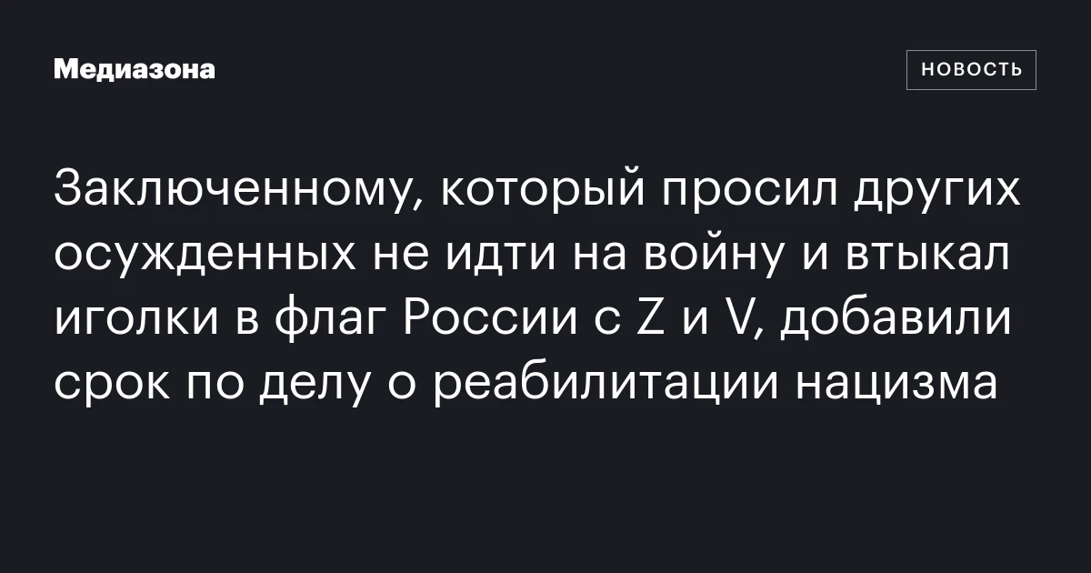 Заключенному, который просил других осужденных не идти на войну и втыкал иголки в флаг России с Z и V, добавили срок по делу о реабилитации нацизма