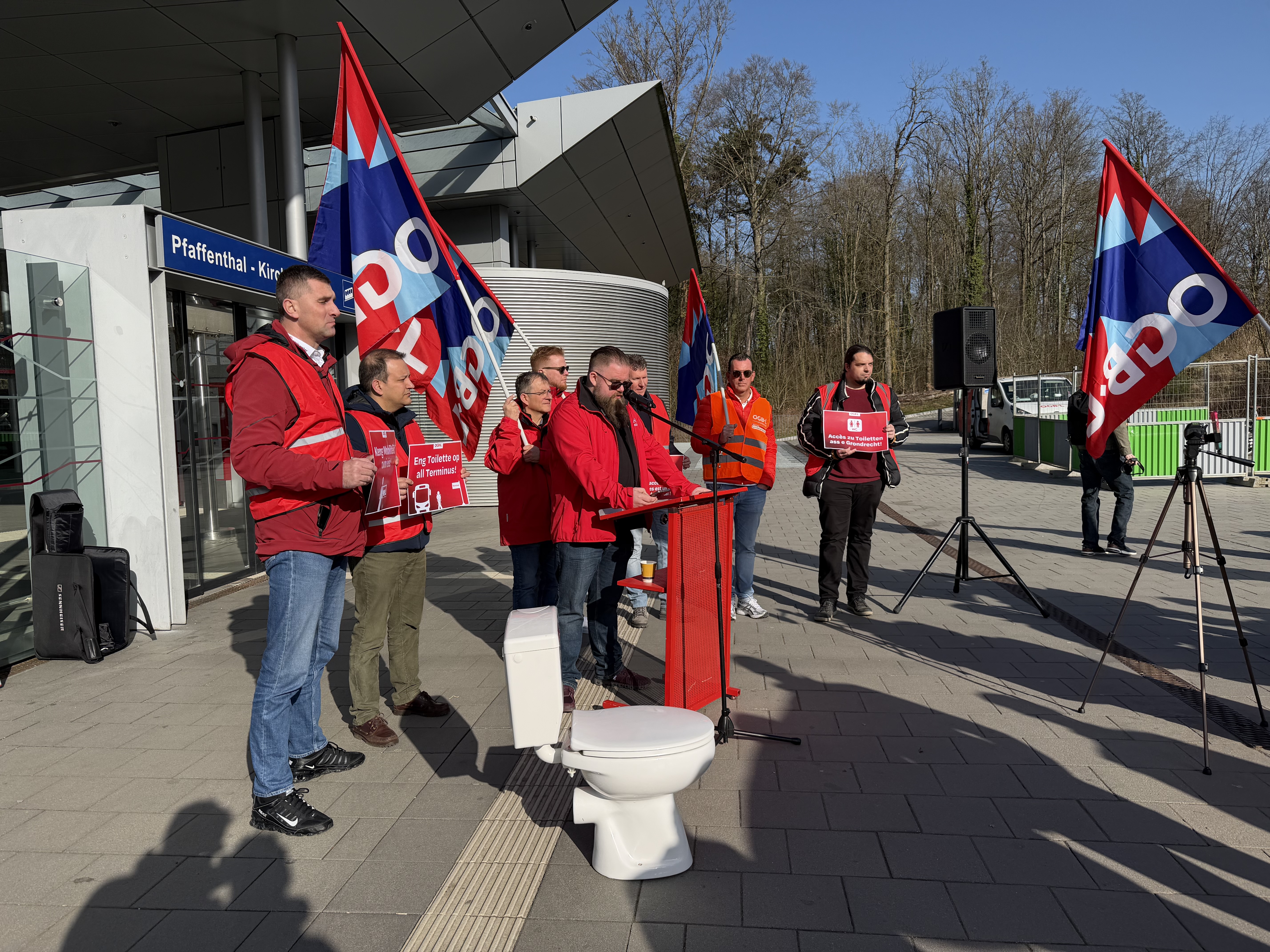 Protestpiquet um Arrêt virun der Rouder Bréck: OGBL fuerdert op all Terminus richteg, propper an accessibel Toiletten