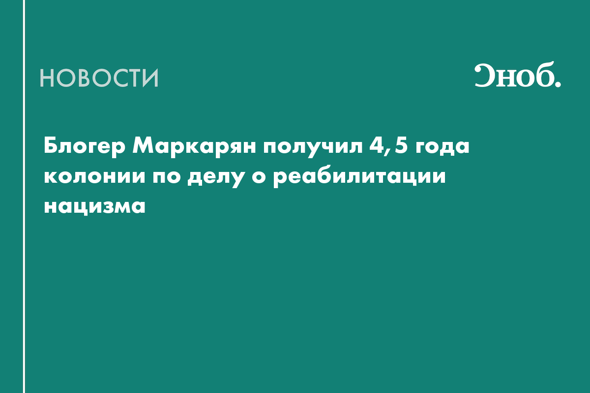 Мосгорсуд вынес блогеру Арсену Маркаряну приговор по делу о реабилитации нацизма. Он получил четыре года и шесть месяцев колонии общего режима.