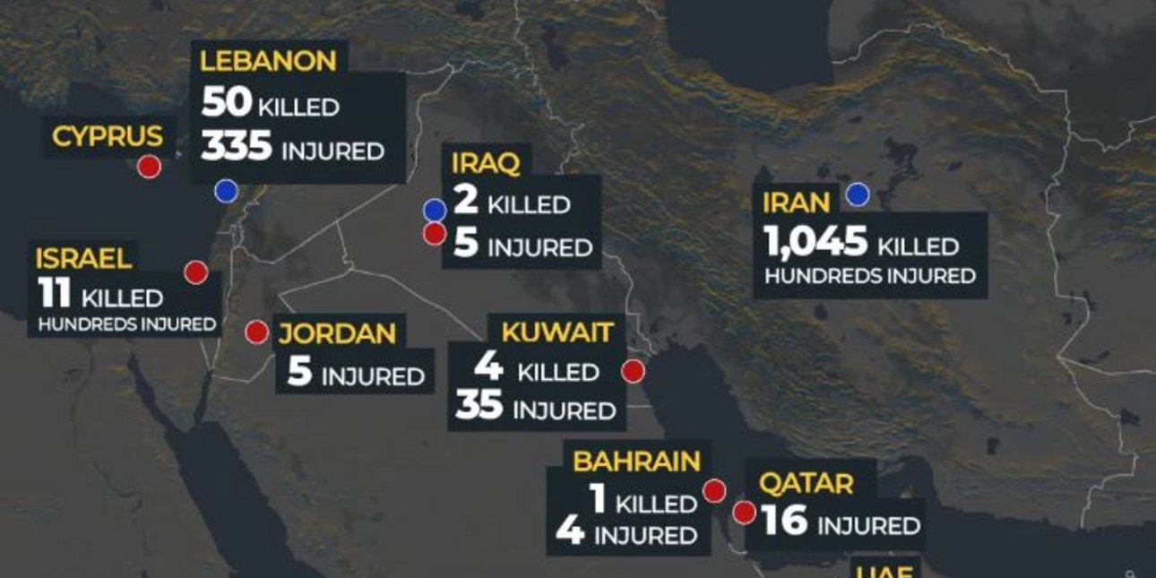 Ο πόλεμος μεταξύ ΗΠΑ και Ιράν έχει αφήσει δεκάδες νεκρούς και εκατοντάδες τραυματίες σε πολλές χώρες της Μέσης Ανατολής . Οι επιθέσεις συνεχίζονται στη Μέση Ανατολή , ενώ οι αριθμοί των θυμάτων αυξάνονται δυστυχώς καθημερινά. Οι απώλειες σε κάθε χώρα από την αρχή του πολέμου στη Μέση Ανατολή Σύμφωνα με τα πιο πρόσφατα στοιχεία από το Aljazeera, 12 χώρες έχουν υποστεί πλήγματα. Στο Λίβανο , τουλάχιστον 50 άτομα έχουν χάσει τη ζωή τους και 335 έχουν τραυματιστεί, ενώ στο Ιράκ οι επιθέσεις έχουν στοιχίσει τη ζωή σε 2 ανθρώπους και έχουν τραυματίσει 5. Στο Ιράν, η κατάσταση είναι δραματική με 1.045 νεκρούς και εκατοντάδες τραυματίες, ενώ στο Ισραήλ οι απώλειες ανέρχονται σε 11 νεκρούς και εκατοντάδες τραυματίες. Άλλες χώρες της περιοχής έχουν επίσης επηρεαστεί: στην Ιορδανία καταγράφηκαν 5 τραυματίες, στο Κουβέιτ 4 νεκροί και 35 τραυματίες, στο Μπαχρέιν 1 νεκρός και 4 τραυματίες, στο Κατάρ 16 τραυματίες, στα Ηνωμένα Αραβικά Εμιράτα 3 νεκροί και 68 τραυματίες, ενώ στο Ομάν 1 νεκρός και 5 τραυματίες. Στη Σαουδική Αραβία δεν έχουν αναφερθεί θύματα μέχρι στιγμής. Οι απώλειες των ΗΠΑ Στον στρατιωτικό τομέα, οι ΗΠΑ έχουν καταγράψει 6 νεκρούς και 18 τραυματίες. Οι αριθμοί αυτοί ενδέχεται να αυξηθούν καθώς οι πληροφορίες επικαιροποιούνται και οι επιθέσεις συνεχίζονται. Οι διεθνείς αρχές καλούν για ψυχραιμία και διπλωματικές προσπάθειες για την αποτροπή περαιτέρω απωλειών. Διαβάστε περισσότερα στο iefimerida.gr