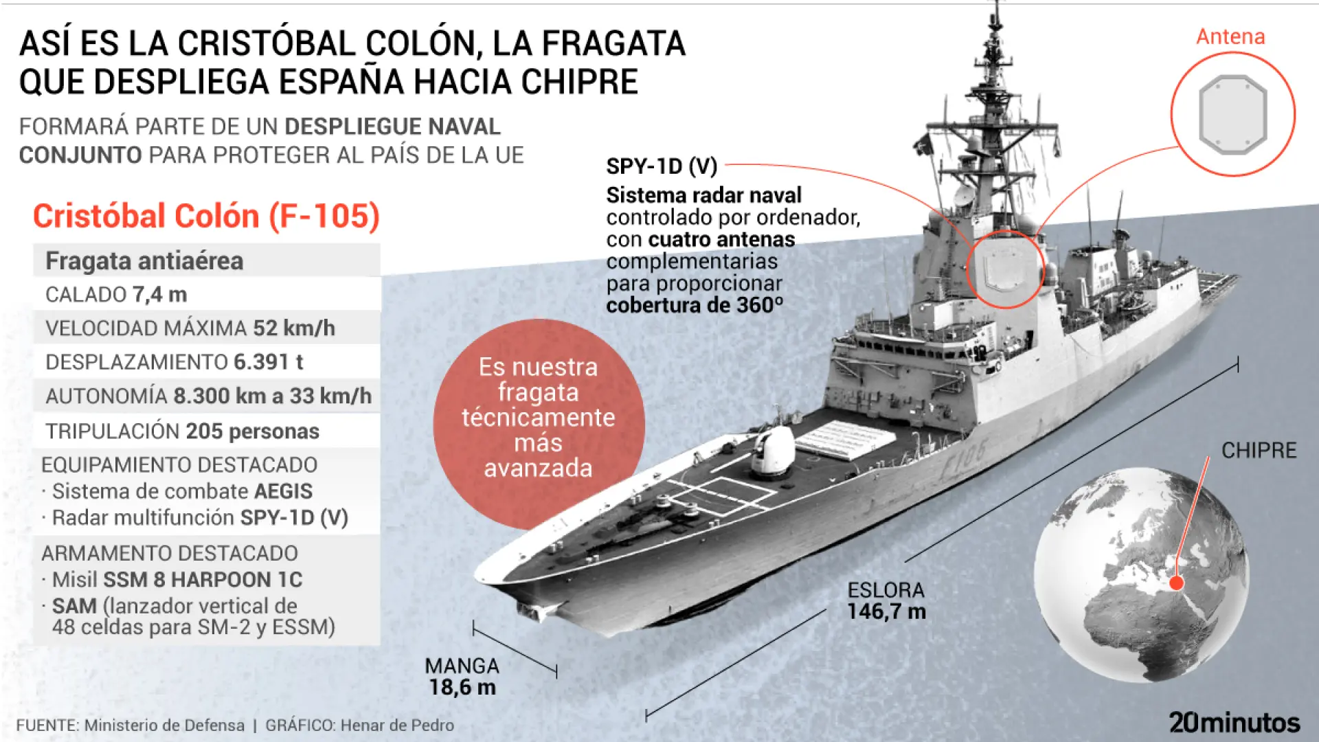 Así es la fragata 'Cristóbal Colón' que España despliega en Chipre, la más avanzada de la Armada