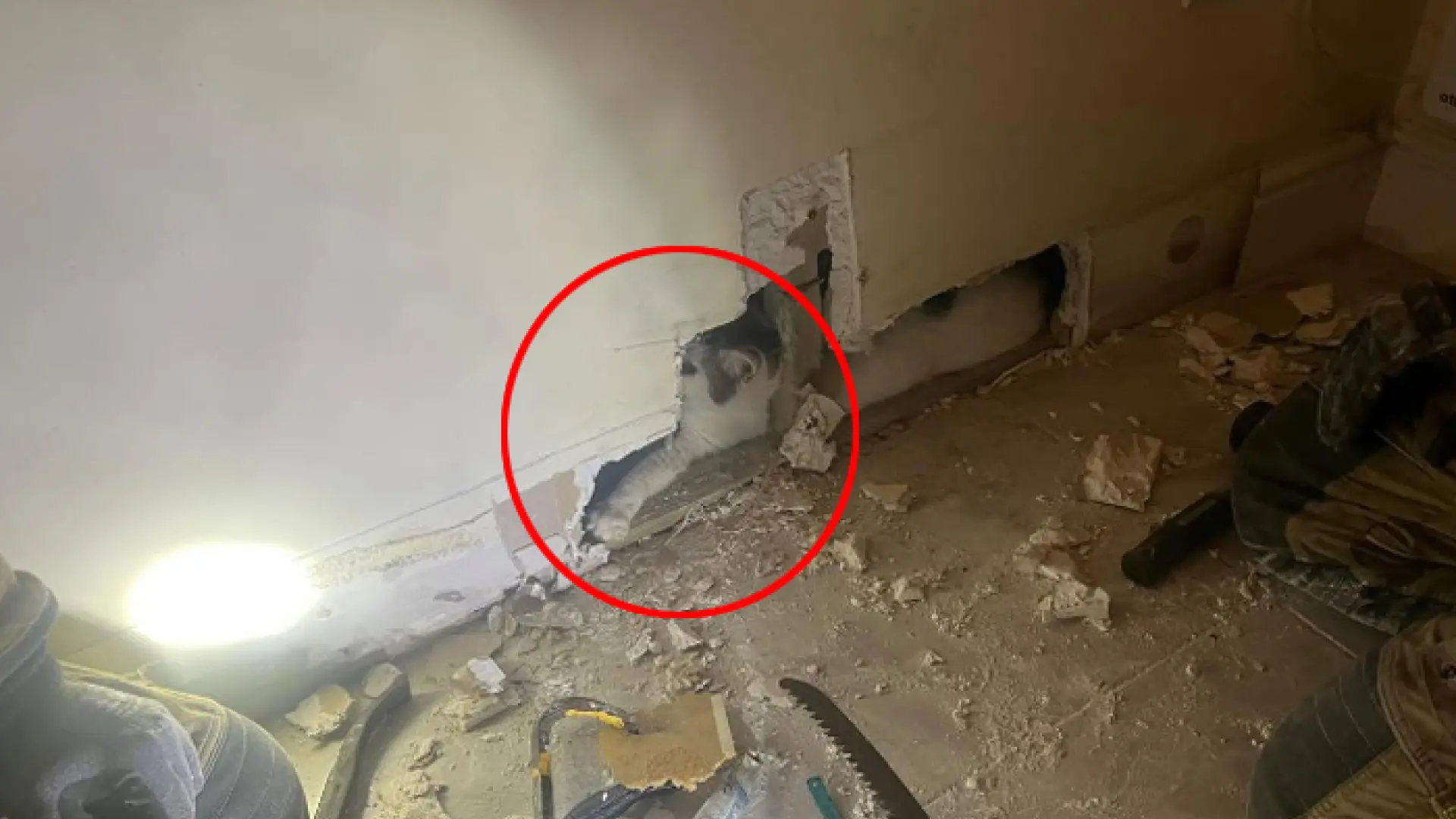 Los bomberos utilizaron una cámara termográfica para localizar con precisión su posición en la pared.