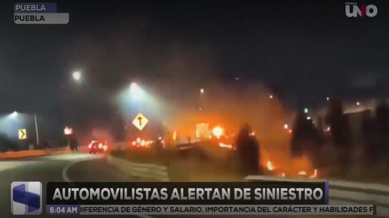 Durante la noche, un vehículo perdió el control, cayó 15 metros junto a un puente de ciclovía y se incendió en el Periférico Ecológico de Puebla.