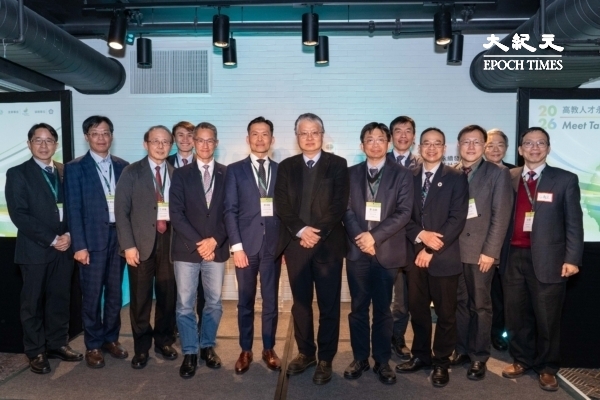 3月2日,教育部政务次长刘国伟(中)携台湾12所高校代表赴波士顿揽才,在波士顿公园广场酒店会议厅举办宣讲活动。(刘景烨/大纪元)