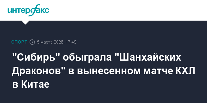 Хоккеисты новосибирской "Сибири" со счетом 2:1 одолели "Шанхайских Драконов" в матче регулярного чемпионата КХЛ.