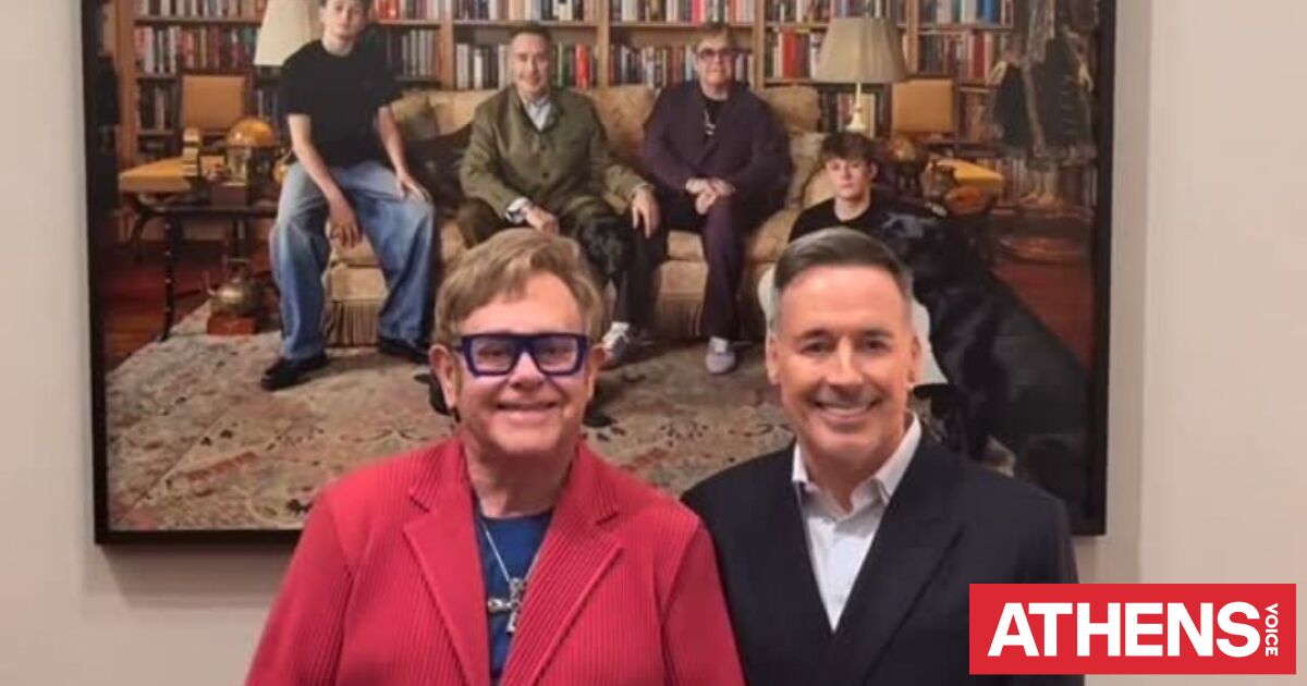 Αποκαλυπτήρια του έργου που απεικονίζει τον σερ Έλτον Τζον, τον σύζυγό του, τα παιδιά τους και τα αγαπημένα τους λαμπραντόρ