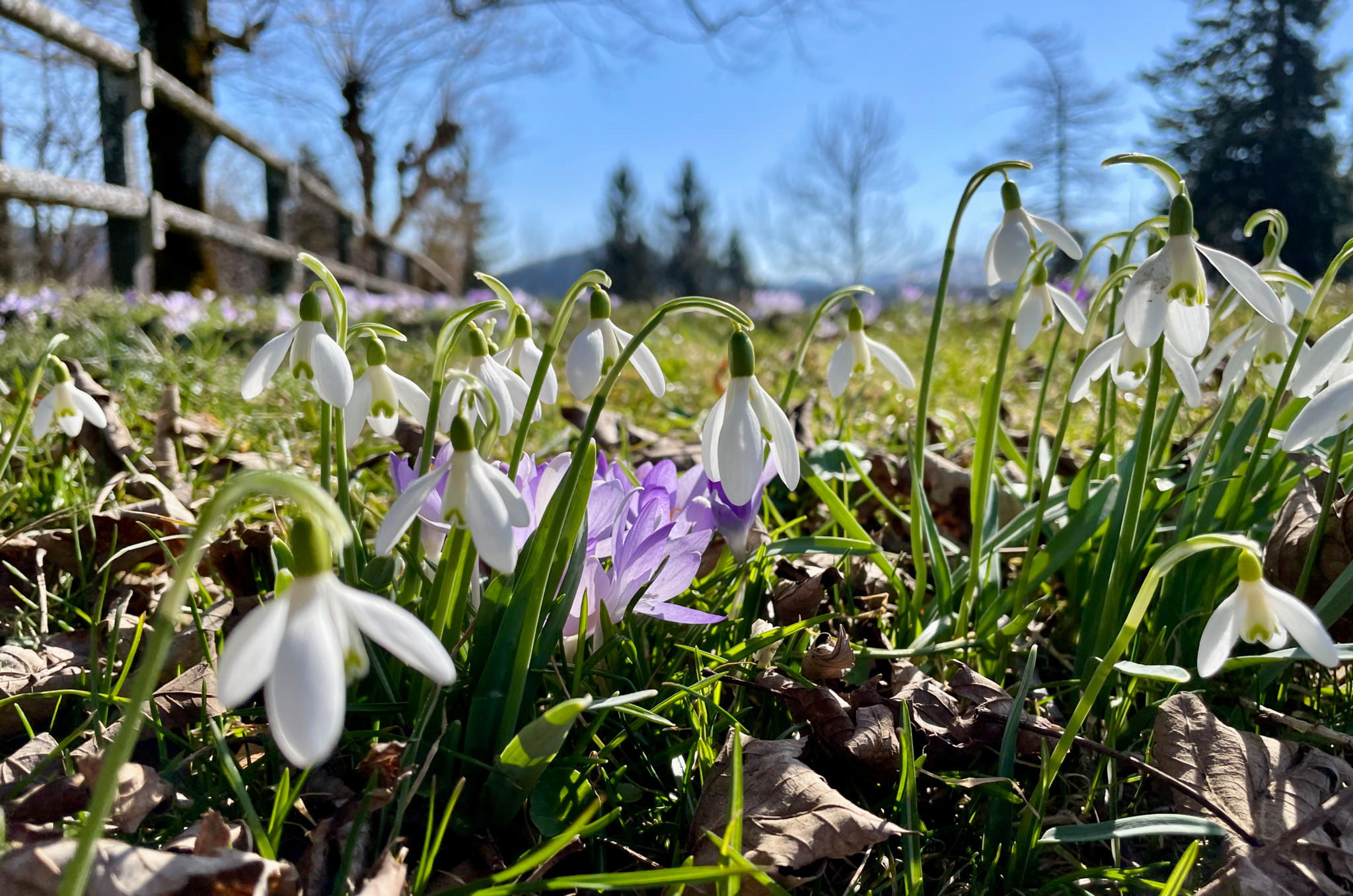 Auf dem Weg von Trogen nach Appenzell freut sich unser Wanderer über den Blick zum Alpstein – und die Frühlingsflora.