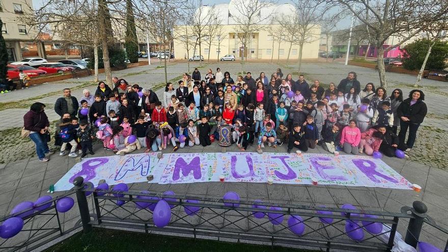 Desde globos de color violeta hasta papeleras y murales. Los alumnos del colegio Cerro de Reyes y Pastor Sito han recorrido el barrio este jueves en una ruta educativa con motivo del Día Internacional de la Mujer. Los participantes se han desplazado desde los centros educativos hasta el templete, ubicado detrás de la parroquia de Jesús Obrero, donde se han llevado a cabo varias actividades.