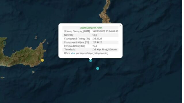Ο σεισμός προέρχεται από τον θαλάσσιο εστιακό χώρο που βρίσκεται σε απόσταση 35 χιλιομέτρων νότια από την Κάσο και ανατολικά από το Λασίθι στην Κρήτη