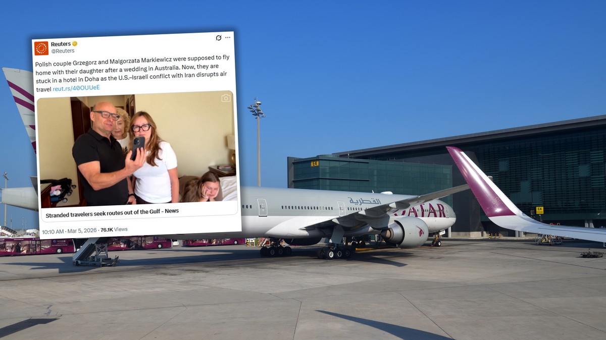 Grzegorz i Małgorzata Markiewicz wracali z Australii do Polski po rodzinnej uroczystości — ślubie. Ich podróż nagle się zatrzymała. Polska rodzina od kilku dni jest uwięziona w hotelu w Dosze, w Katarze, razem z innymi pasażerami, których plany podróży pokrzyżowało zaostrzenie konfliktu USA i Izraela z Iranem.