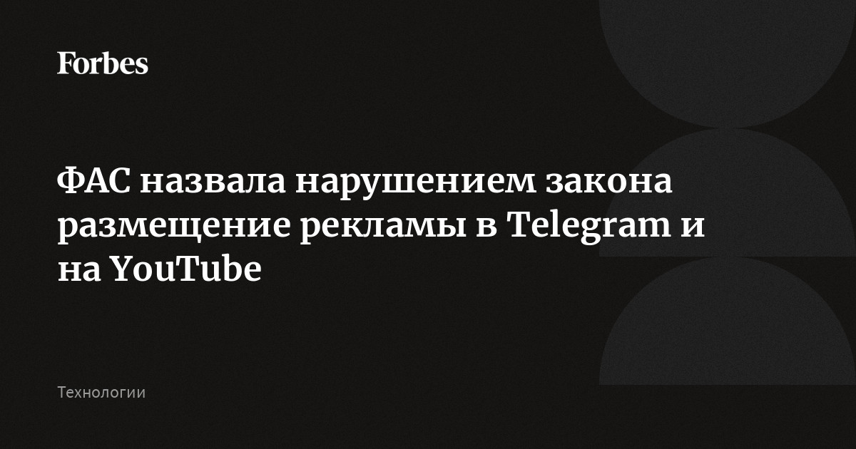 Федеральная антимонопольная служба назвала нарушением закона размещение рекламы в Telegram и на YouTube в связи с принятием мер по ограничению доступа к мессенджеру и