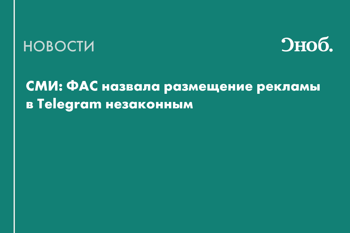Федеральная антимонопольная служба России заявила, что реклама в Telegram, а также в соцсетях и на других платформах, доступ к которым был ограничен Роскомнадзором, может считаться нарушением законодательства о рекламе.