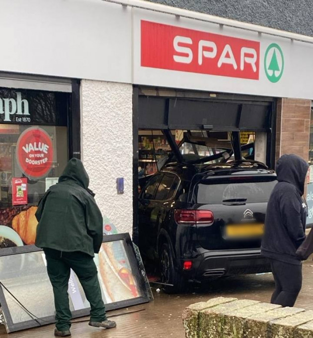 Driver and customers escape injury after car crashes through front of Spar shop in Co Antrim