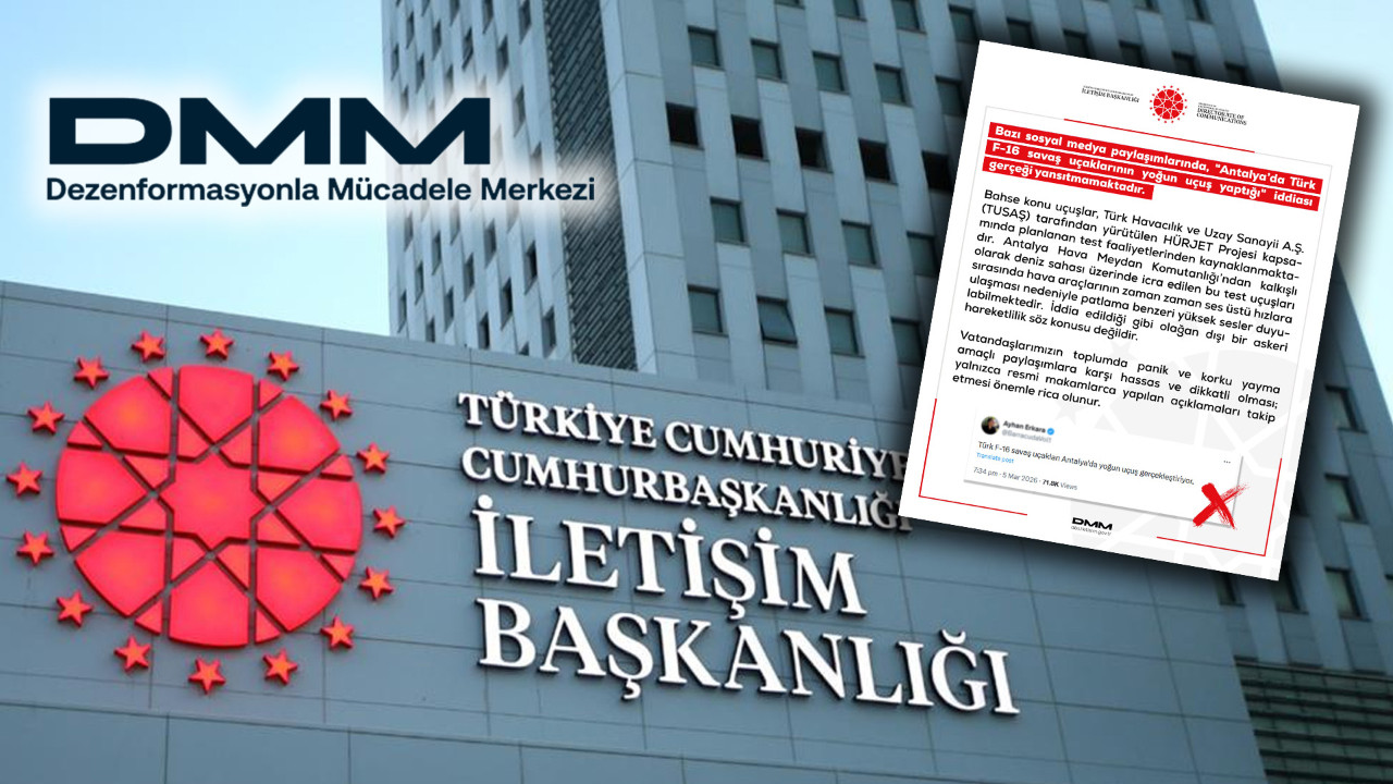 Dezenformasyonla Mücadele Merkezi, "Antalya’da Türk F-16 savaş uçaklarının yoğun uçuş yaptığı" iddiasının gerçeği yansıtmadığını belirtti. Söz konusu paylaşımlarla panik ve korku yayılmasının amaçlandığı ifade edildi.