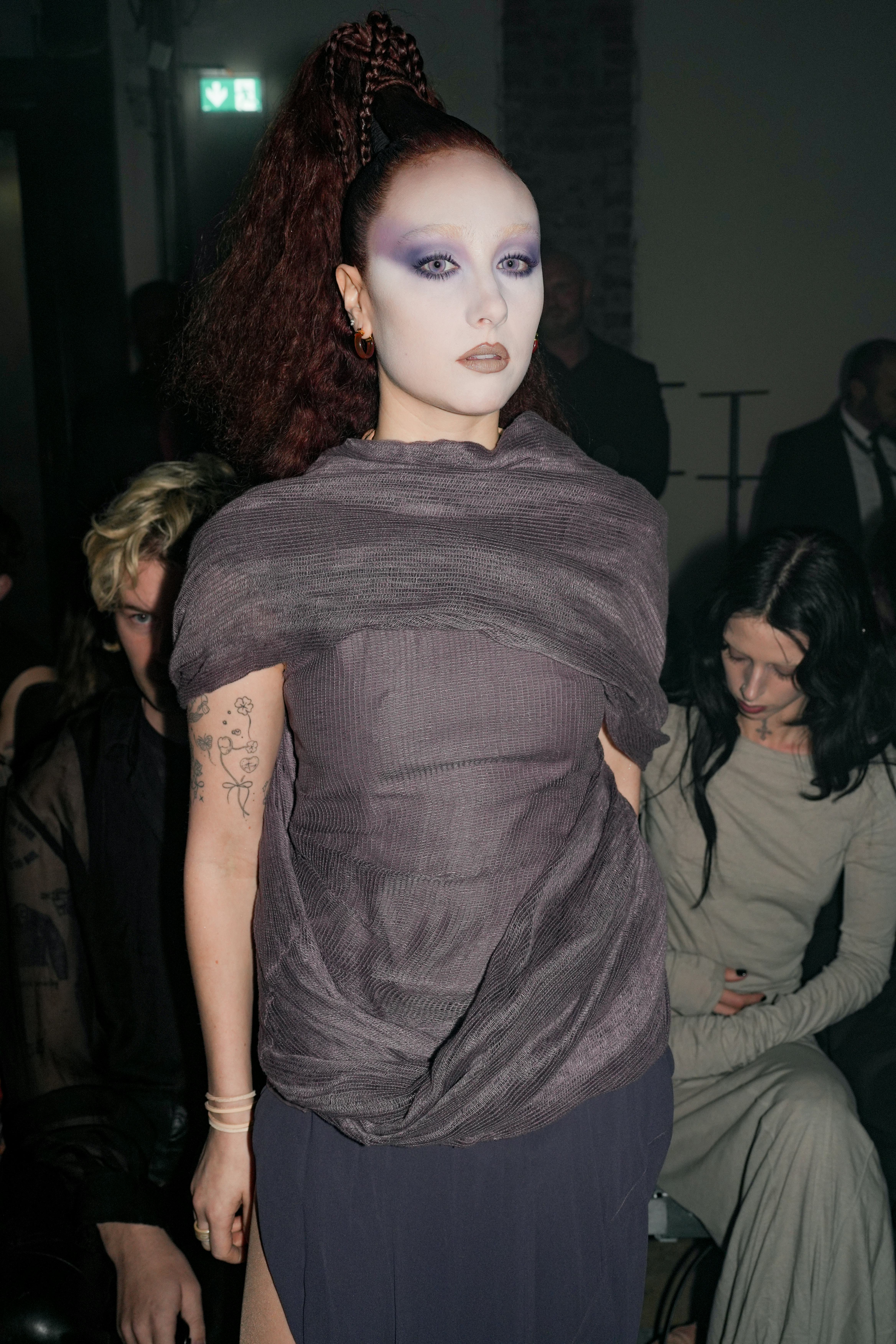 The singer continued her moody style streak at the Rick Owens Paris Fashion Week show.
