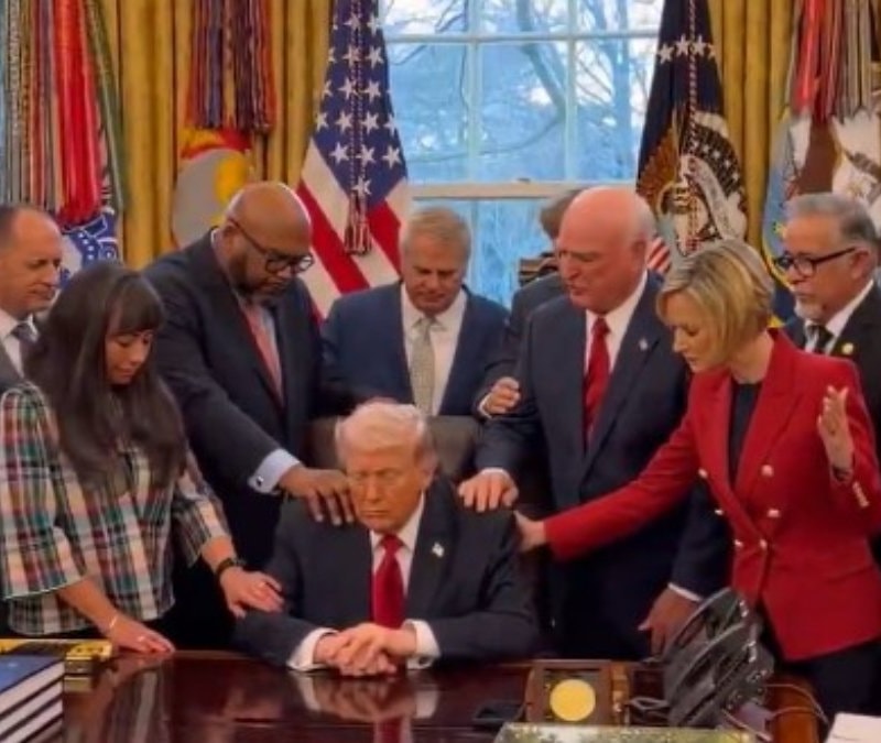 Odaklı Spot: ABD Başkanı Donald Trump, ülkenin dört bir yanından gelen dini liderleri Oval Ofis’te misafir etti. Trump’ın masası etrafında toplanan grup dua ederek dikkat çeken görüntülere imza attı.