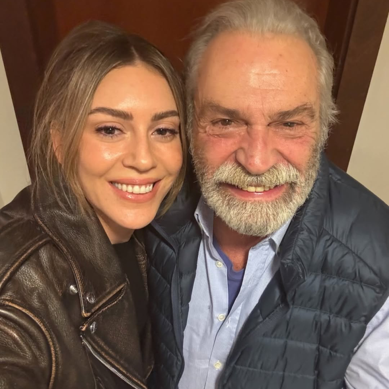 Ünlü oyuncu Sinem Kobal, Haluk Bilginer'in 'Baba' oyununu izledi ve kuliste Bilginer ile fotoğraf çektirdi