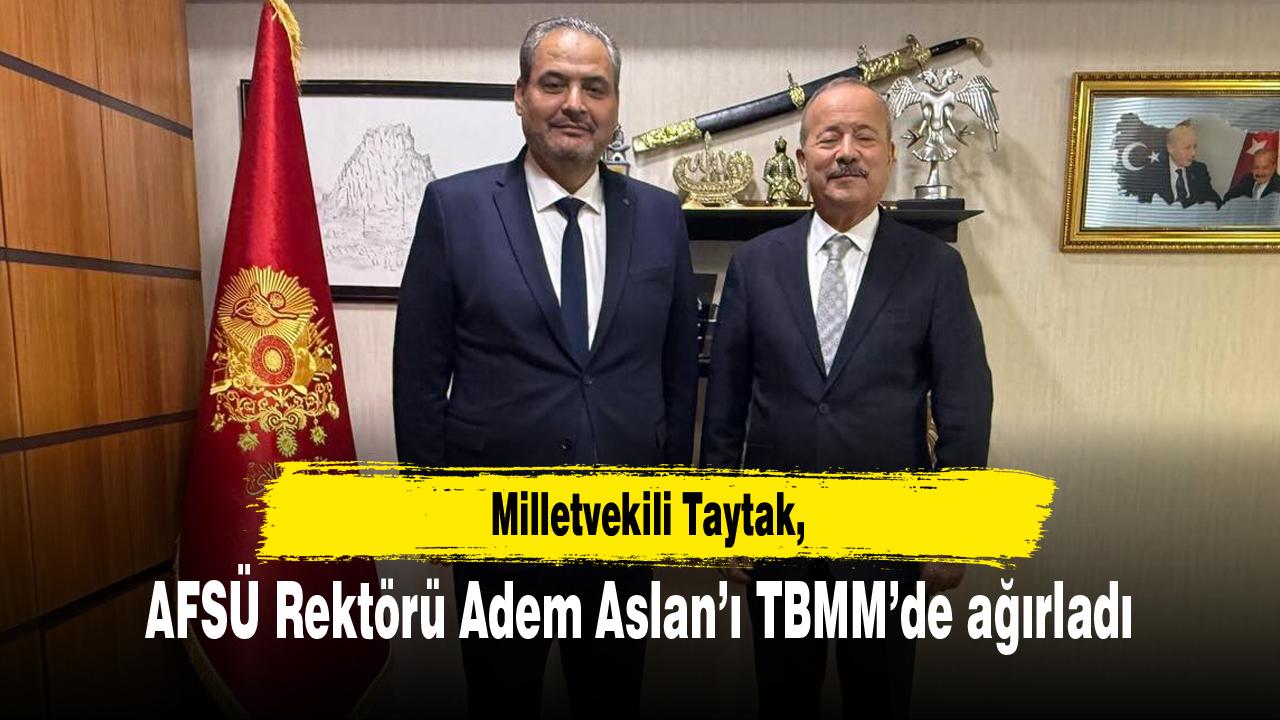 MHP Afyonkarahisar Milletvekili Mehmet Taytak, Afyonkarahisar Sağlık Bilimleri Üniversitesi Rektörü Prof. Dr. Adem Aslan’ı Türkiye Büyük Millet Meclisi’nde kabul etti.