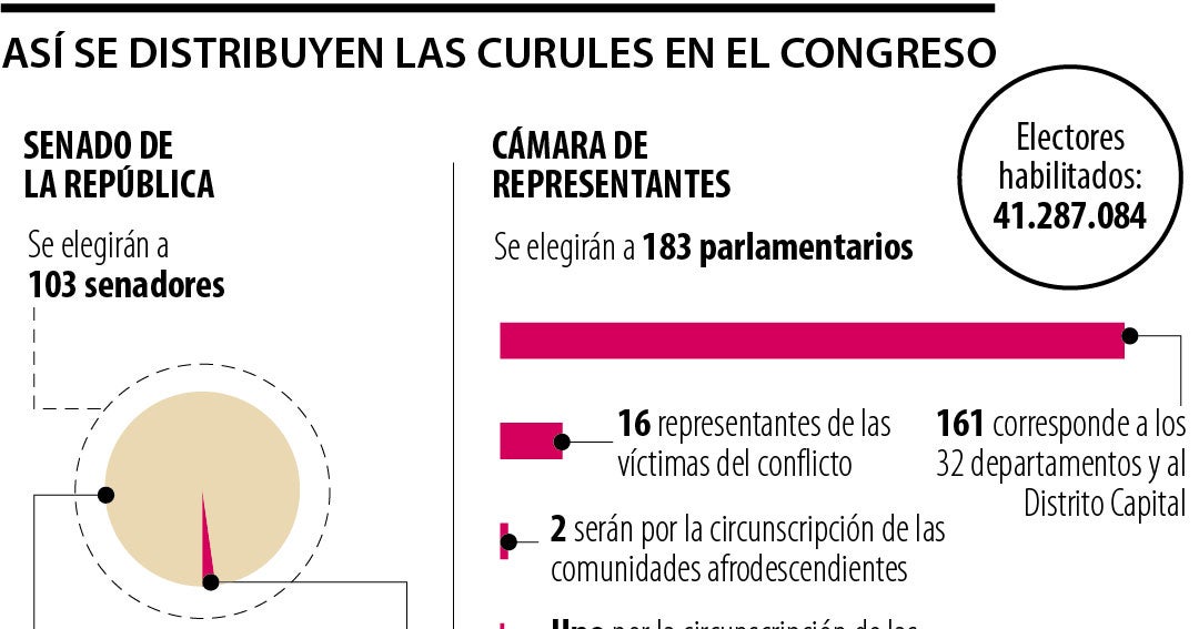 En cuanto al Senado de la República se elegirá a 103 senadores; mientras que para la Cámara de Representantes, se elegirán a 183 parlamentarios