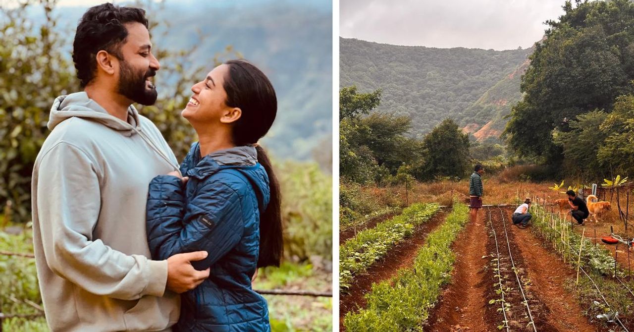 Originally reported and written in July 2025, this story has been republished as part of our archival content. What does it take to leave behind the noise, the rush, and the endless grind of city life, and choose instead the steady pulse of the land? For Neil and Momo, this was not just a question. It was a calling. Located in the misty hills of Mahabaleshwar , their farm is a world apart from the hectic streets and towering offices they once knew. Here, mornings begin with the soft chorus of birdsong, not honking traffic. Days are shaped by the rising sun, the turning seasons, and the hands-on work of tending soil, trees, and animals. It is in this rugged beauty that Swapnil Rao and Mrunmayee Deshpande Rao, known to most as Neil and Momo, chose to build a new kind of life. Neil’s path to this life began with a rigorous education in engineering, followed by business management. His city years were filled with building startups and strategic growth. “I was chasing success, but somehow I felt disconnected from people, purpose, and the world around me,” he tells The Better India . On the other hand, Momo’s upbringing in Pune was woven with the colourful threads of art and culture. From childhood, she indulged in the world of theatre and film, pouring her heart into performances that captivated audiences and brought stories to life. Her success as an actor and director in the Marathi industry brought her recognition and the thrill of creative expression. But beneath the applause and the bright lights, she felt a yearning that went beyond the stage. The fast pace of the entertainment world, with its relentless schedules and endless demands, left little room for stillness or introspection. She longed for a life uncluttered by noise, where she could find space to breathe freely and reconnect with something more enduring and true. “It was not that I wanted to leave my passion behind,” she reflects, “but I needed to find balance, a life where creativity could flow naturally, alongside peace and simplicity.” A meeting of minds (and hearts) online Neil and Momo’s meeting in 2015, through a matrimonial website, brought these shared longings into focus. “We realised we wanted something different,” Momo recalls. “A life that was slower, more meaningful, and strongly connected to the earth.” Swapnil and Mrunmayee met through a matrimonial site and bonded over their interest in living a sustainable life So, they made the daring decision to walk away from the noise and pace of city life , not to escape, but to live in nature’s lap. The choice to move to the hills was not romanticised; it was the result of constant questioning, reflection, and a desire to reconnect with something real. Life on the land came with its share of challenges, like erratic weather, unfamiliar terrain, and the unrelenting demands of farm work. But each day brought them closer to understanding what they were looking for in this new way of life. By 2019, those questions had become a clear vision. But they knew that desire alone was not enough. Neil enrolled in formal permaculture training, immersing himself in the principles of regenerative agriculture, learning how to design systems that restore soil health, conserve water, and support biodiversity. Alongside this, the couple chose to live and work on farms run by friends and mentors, spending time in different rural settings to observe, ask questions, and understand the realities of land-based living. They took their time researching, listening, and learning at every step. Choosing a broken piece of land on purpose In 2020, they finally took the leap and sold everything they had in Mumbai and purchased a piece of land in Malusar, a small village tucked in monsoon-fed hills of Mahabaleshwar. But the land they chose was not a picture-perfect plot; it was barren in places, stripped of nutrients, and in need of healing. That is exactly why they chose it. “We spent the whole of 2021 just observing,” the couple explains. “In the first year of shifting to the land, you are not supposed to touch anything; you just watch, listen, and try to understand what the land needs.” In 2020, the couple finally took the leap and sold everything they had in Mumbai and purchased a piece of land in Malusar In 2022, they built a small one-room studio on the farm and began the work of establishing their food forest . “We wanted to move in quickly, so the house was designed to be simple but very scientific,” explains Neil. “Its alignment is east-west, which allows us to make the most of the natural wind flow to keep it cool.” The materials they chose were rooted in the local landscape. “There is no plaster on the outside; the walls are made of laterite, a native Mahabaleshwar stone. Inside, we avoided cement completely and used lime instead. We built the entire house ourselves, just the two of us, with our own hands,” says Momo. Their home is entirely solar-powered. “We are net zero in terms of electricity,” they explain. “It is a tiny house, so it does not take up too much space, and everything was designed using passive solar principles,” she adds. Rainwater harvesting plays a crucial role. “All the runoff from the roof is captured and stored in tanks, then directed to irrigate the food forest,” her husband says. Even wastewater is carefully managed. “Our greywater, from the bath and kitchen sink, passes through reed beds, where it is naturally filtered, and then it goes to water our banana plants,” he explains. Nothing goes to waste. “We compost all our kitchen scraps and return them to the farm. Everything stays within the system,” they say. Let nature lead: Planting a food forest Their mission was to restore the land using permaculture practices, to let nature lead the way, and to enhance the space into an abundant farm where food, creativity, and care could flourish side by side. Their long-term vision extended beyond just growing t