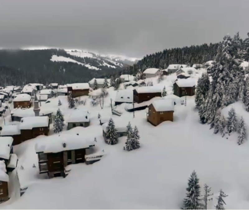 Giresun’un yüksek kesimlerinde etkili olan kar yağışı, 1800 rakımlı Kulakkaya Yaylası’nı bembeyaz bir tabloya dönüştürdü.