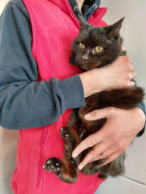 Am Dienstag wurde am Tierschutzhof Pfotenhilfe in Lochen eine verwahrloste schwarze Katze abgegeben. Diese war bereits seit einer Woche von ihren Findern im Gemeindegebiet von Palting beobachtet worden. PALTING, LOCHEN. Die Katze ist am Fundort und auch in der Umgebung niemandem bekannt. Pfotenhilfe-Chefin Johanna Stadler erklärt: "Die schwarze Katze hat ein auffälliges Merkmal: Sie hat keinen Schwanz und das Fell am Rücken war vollkommen verfilzt und verklebt, weswegen sie bei der...