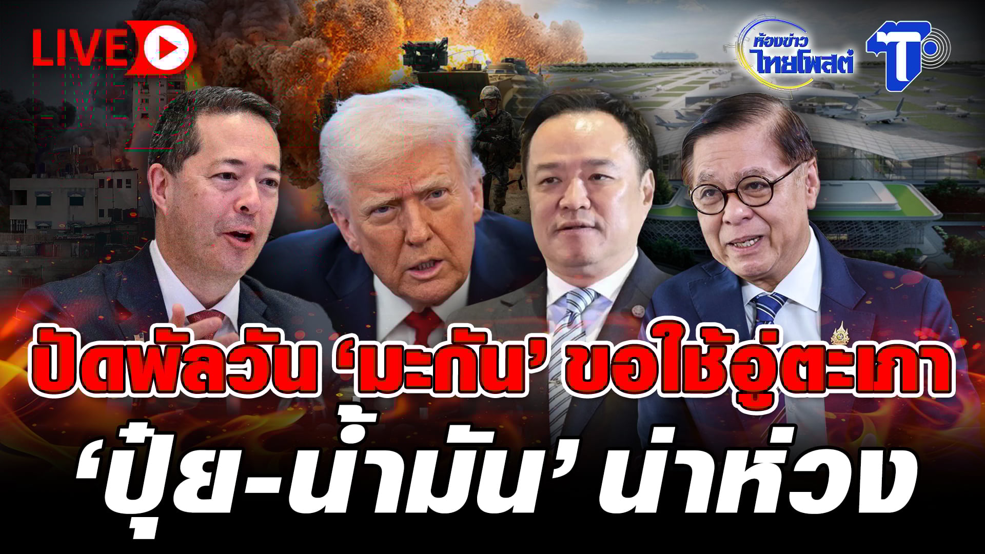 ห้องข่าวไทยโพสต์ : วันอังคารที่ 5 มีนาคม พ.ศ. 2569 The post LIVE ปัดพัลวัน ’มะกัน’ ขอใช้อู่ตะเภา ‘ปุ๋ย-น้ำมัน’ น่าห่วง | ห้องข่าวไทยโพสต์ appeared first on .