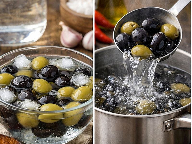 Zeytinin fazla tuzunu çıkarmak için çeşitli yöntemler kullanılabilir. En yaygın yöntem, zeytinleri suya koyup birkaç gün bekleterek arada su değiştirerek tuzunu çözmektir. Hızlı bir çözüm için kaynar su veya sütle bekletmek, tuzun çözülmesini ve zeytinin yumuşamasını sağlar. Ayrıca limonlu su veya hafif haşlama yöntemleri de tuzun giderilmesine yardımcı olur ve lezzeti dengeler.
