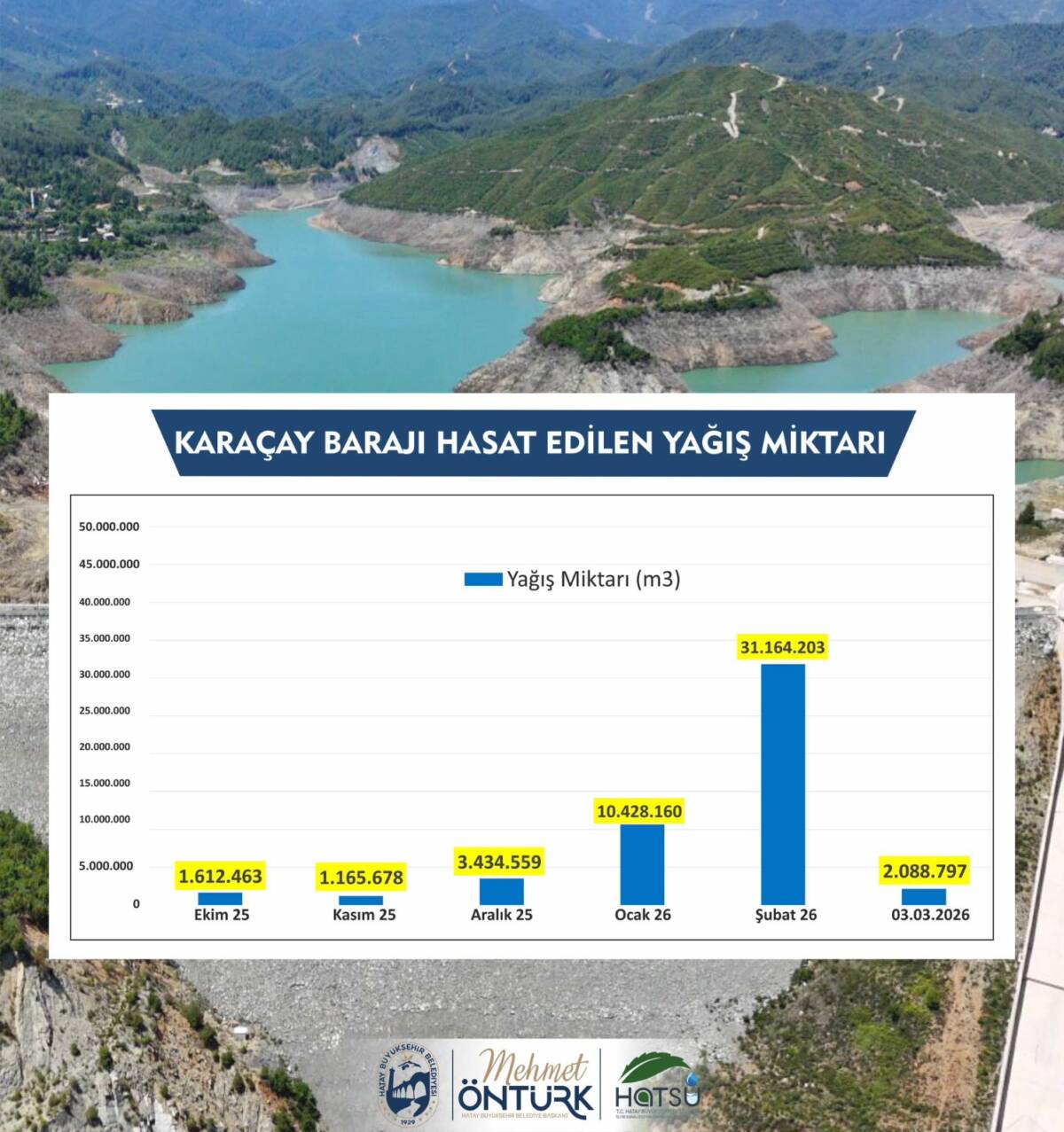 Hatay’da son aylarda etkili olan yağışlar, içme suyu ve tarımsal sulama açısından önemli bir gelişmeyi beraberinde getirdi. Samandağ, Defne ve Antakya ilçelerine kısmi olarak tarımsal, ağırlıklı olarak da içme suyu sağlayan Karaçay Barajı’nda doluluk oranı yüzde 80’e yaklaştı. Barajda biriken su miktarının yaklaşık 50 milyon metreküp (50 milyon ton) olduğu açıklandı. Hatay Su ve Kanalizasyon […] The post Karaçay Barajı’nda 50 milyon ton su birikti first appeared on Antakya Gazetesi .