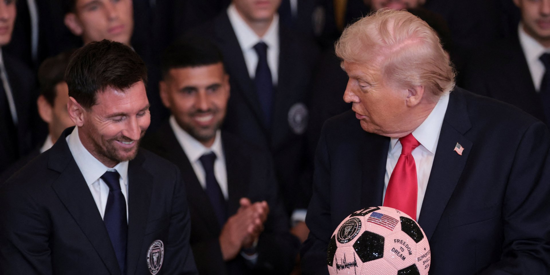 Президент США Дональд Трамп встретился с футболистами и менеджментом Интер Майами, которые в 2025 году впервые выиграли Кубок МЛС.
