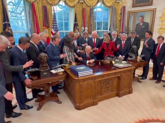 La preghiera con (e su) Trump nella Sala Ovale per la vittoria in guerra