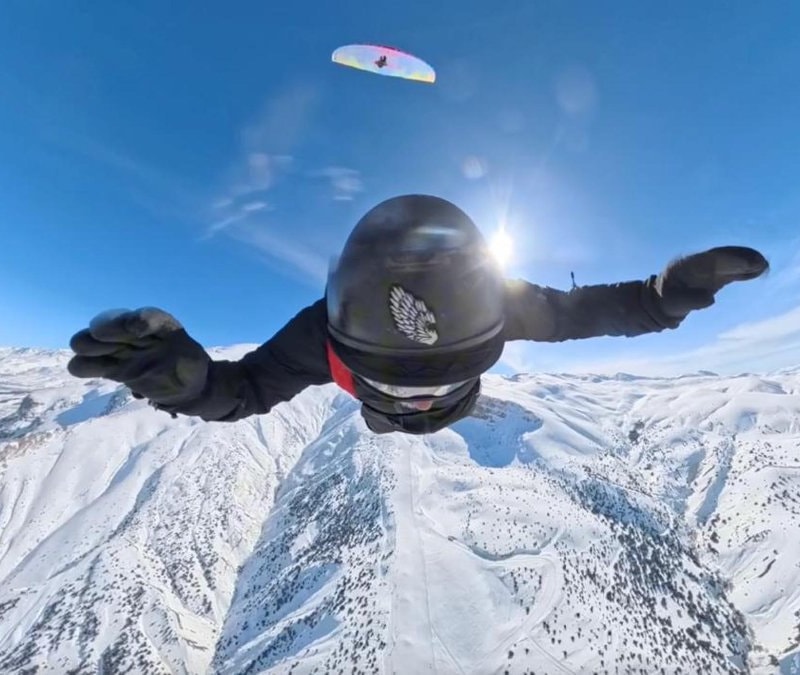 BASE JUMP ve wingsuit sporcusu Cengiz Koçak, Erzincan’daki Ergan Dağı Kayak Merkezi’nde gerçekleştirdiği 500 metrelik uçuşuyla izleyenleri heyecanlandırdı.