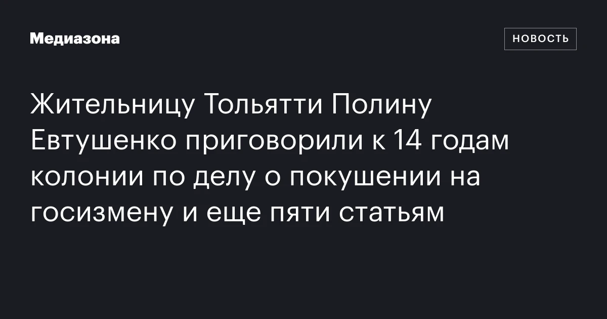 Жительницу Тольятти Полину Евтушенко приговорили к 14 годам колонии по делу о покушении на госизмену и еще пяти статьям