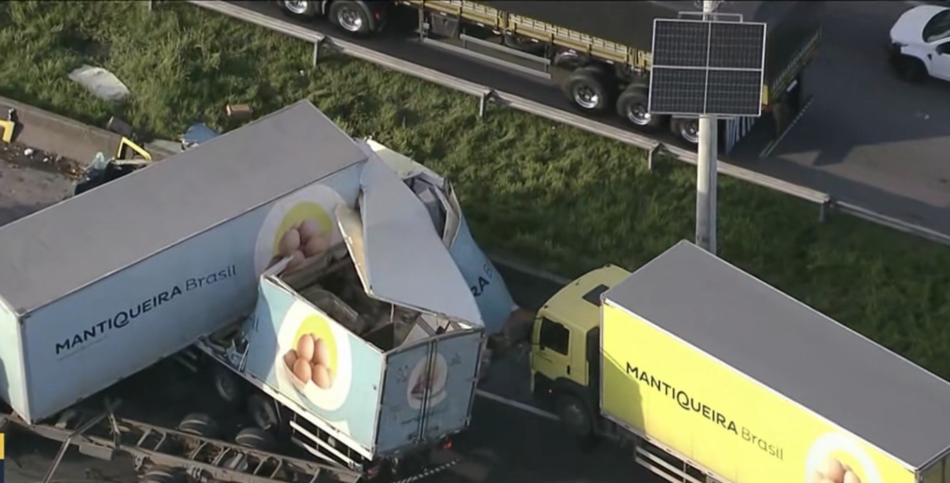 Um acidente na pista sentido Rio da Rodovia Presidente Dutra, na altura de Nova Iguaçu, na Baixada Fluminense, na manhã desta sexta-feira, deixou uma pessoa gravemente ferida e outra com lesões leves. A batida envolveu uma carreta, três caminhões e um automóvel, segundo o perfil no X da Ecovias Rio Minas. O trânsito foi interditado no Km 18 da via. Por volta das 7h, o engarrafamento no trecho chegava oito quilômetros. Os veículos saíram do Sul de Minas Gerais transportando 13 toneladas de ovos para serem entregues no Rio. Os feridos são o motorista de um caminhão, que foi levado para o Hospital Geral de Nova Iguaçu com quadro considerado grave. A cabine onde ele estava ficou destruída. O ajudante dele, que estava no banco do carona, não se feriu. A outra pessoa que se machucou foi o motorista do automóvel. Ele sofreu lesões nas pernas, consideradas leves.