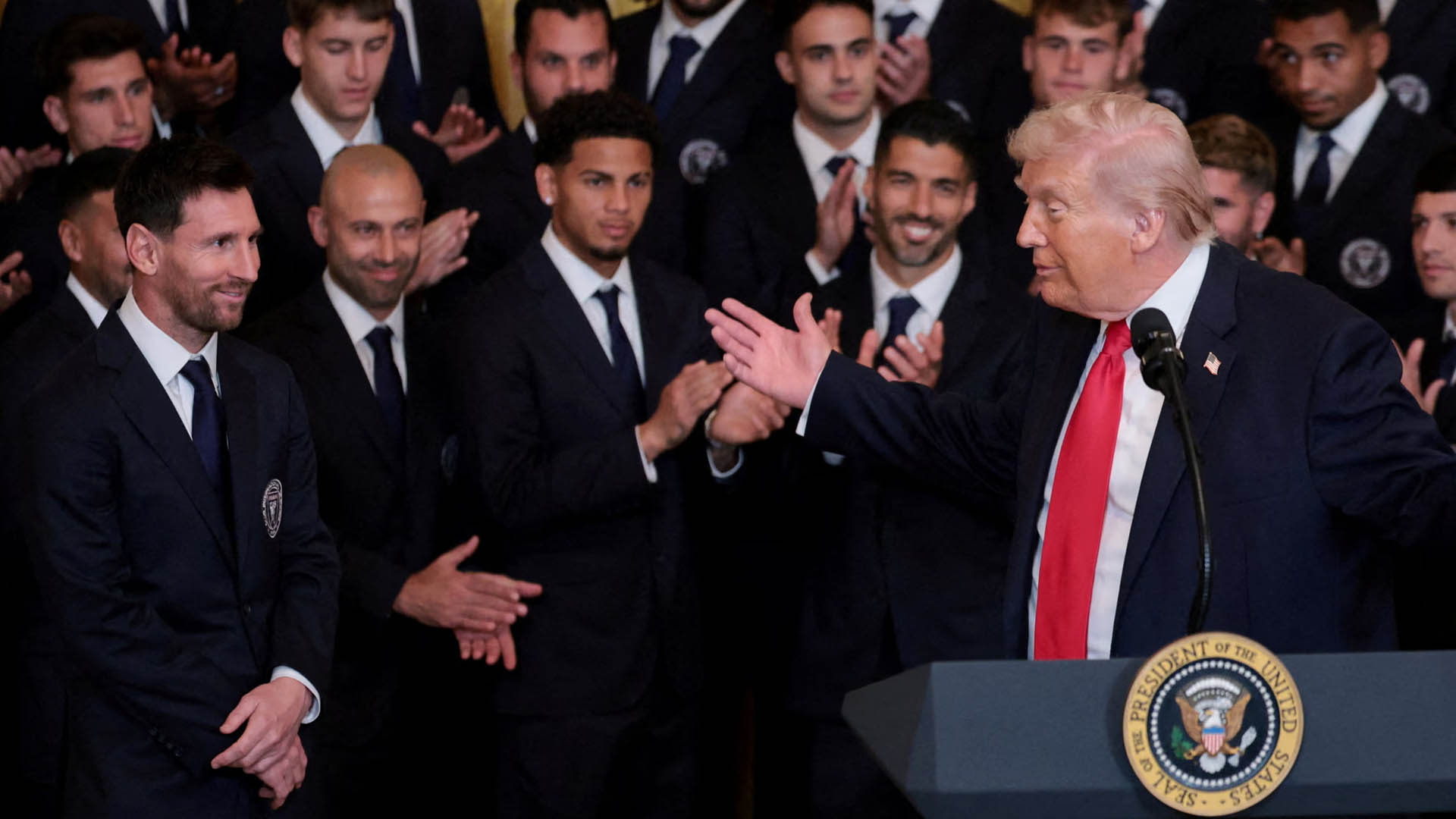 মেসি নাকি পেলে, কে সর্বকালের সেরা? এই দ্বন্দ্ব আবারো সামনে নিয়ে আসলেন যুক্তরাষ্ট্রের প্রেসিডেন্ট ডনাল্ড ট্রাম্প। এমএলএস কাপ জয়ের উদযাপন করতে ইন্টার মায়ামিকে হোয়াইট হাউজে আমন্ত্রণ জানিয়ে গোট ডিবেটকে নিয়ে কথা বলেন তিনি। মায়ামি ফুটবলারদের সঙ্গে ট্রাম্প একমত হন যে মেসি সর্বকালের সেরা ফুটবলার। এ সময় পেলে এবং ক্রিস্টিয়ানো রোনালদোর প্রশংসা করেন ট্রাম্প।ইরানে হামলা করে যখন সারা বিশ্বকে অস্থির করে রেখেছেন ডনাল্ড ট্রাম্প, তখন তার সঙ্গে হোয়াইট হাউজে সাক্ষাৎ করতে গেলেন আর্জেন্টাইন সুপার স্টার লিওনেল মেসি। তবে হোয়াইট হাউজে যাওয়ার উদ্দেশ্যটা ভিন্ন। এমএলএস কাপে এবার চ্যাম্পিয়ন হয়েছে মেসির ক্লাব ইন্টার মায়ামি। তাদের সম্মান জানাতে আমন্ত্রণ জানান যুক্তরাষ্ট্র প্রেসিডেন্ট ডনাল্ড ট্রাম্প। ইরানে যুদ্ধ বাঁধিয়ে যখন ঘরে বাইরে সমালোচনার মুখে ট্রাম্প, তখন মেসিকে তার ওভাল অফিসে ডেকে ইতিবাচক ইমেজ তৈরি করতে চান এপস্টিন ফাইল কান্ডে বিতর্কিত এই প্রেসিডেন্ট। এ সময় ফুটবল নিয়ে স্মৃতিচারণ করেন ট্রাম্প। আলোচনায় উঠে আসে মেসি না পেলে কে সর্বকালের সেরা সেই বিতর্কও। এ বিষয়ে নিয়েও কথা বলেন মার্কিন প্রেসিডেন্টও। তিনি বলেন, ‘আমার এটা বলা উচিত নয়, কারণ আপনারা আমাকে বৃদ্ধ বলবেন। আমি কিন্তু পেলের খেলা দেখেছি। সে নিউইয়র্ক কসমসের হয়ে খেলেছে। অনেকেই হয়তো চেনেন না কসমস নিউইয়র্কের একটি ক্লাব ছিল। যার চেয়ারম্যান ছিলেন আমার খুব ভালো বন্ধু স্টিভ রস। সে পেলেসহ বেশ কিছু ভালো ফুটবলারকে যুক্তরাষ্ট্রে নিয়ে এসেছিল। আপনি পেলের চেয়ে ভালো ফুটবলার হতে পারেন। তবে পেলে দারুণ খেলতেন। আপনাদের (উপস্থিত মায়ামি ফুটবলারদের উদ্দেশে) কি মনে হয়, মেসি নাকি পেলে সেরা ফুটবলার? (সবার হ্যাঁ সূচক জবাবের পর) সবার সঙ্গে একমত। মেসিই সেরা ফুটবলার।’ আরও পড়ুন: প্রথমবার হোয়াইট হাউজে মেসি, উপহার দিলেন ট্রাম্পকে যুক্তরাষ্ট্রে ফুটবল সকার নামে পরিচিত। দেশের দায়িত্ব পালনের পাশাপাশি ফুটবলেরও খবর রাখেন ট্রাম্প সেটা স্পষ্ট হয় তার মুখে ইন্টার মায়ামির প্রশংসা শুনে। বিশেষ করে তার সন্তান ফুটবলের ভক্ত বলেও জানান তিনি। এবার এমএলএস কাপ জয়ে মায়ামির প্রশংসা করেন ট্রাম্প। তিনি বলেন, ‘২০২৫ সালটা ইন্টার মায়ামির জন্য রেকর্ড ভাঙা মৌসুম ছিল। গেল গ্রীষ্মে ফিফা ক্লাব বিশ্বকাপের হোস্ট হয়েছে। ইন্টার মায়ামি এবার অপ্রতিরোধ্য ছিল। একেবারে ত্রুটিহীনভাবে খেলেছে। ভেনকুভারের বিপক্ষে ম্যাচটি ১-১ গোলে ড্রয়ের পর মেসি ভেনকুভার ডিফেন্ডারকে কাটিয়ে একটি পাস দেন ডি পলকে। ঐ ম্যাচটা সত্যি দারুণ ছিল।’ আরও পড়ুন: জাতীয় দলে ফেরার শেষ বড় সুযোগ নেইমারের সামনে, করতে হবে যা এসময় তিনি ক্রিস্টিয়