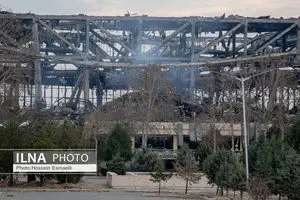 نمایی بیرونی از حمله هوایی به سالن ۱۲ هزار نفری آزادی