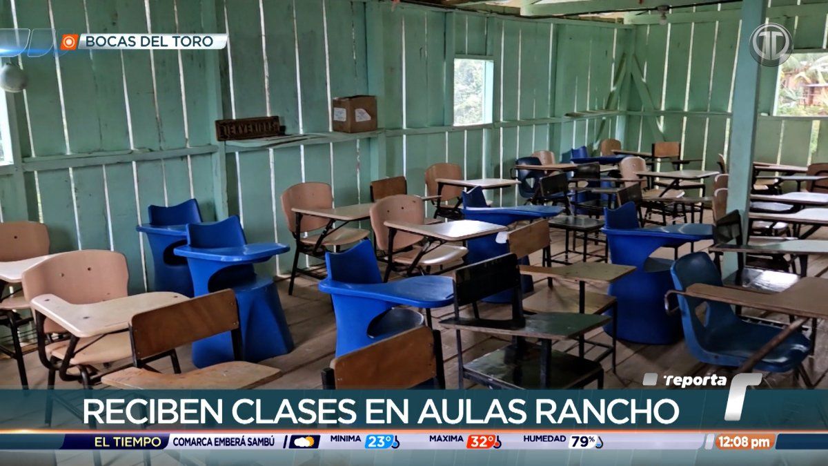 En el Centro Educativo Alto La Gloria, en Bocas del Toro, estudiantes reciben clases en aulas rancho. Los padres de familia exigen al Ministerio de Educación (Meduca) una solución.