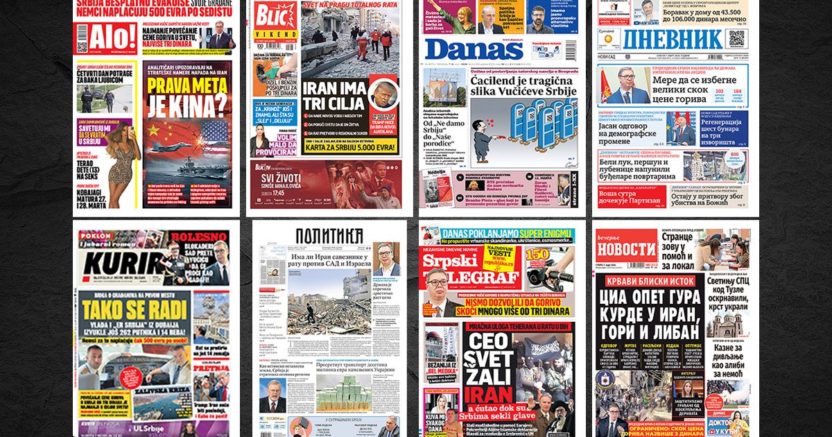 NASLOVNE STRANE SUTRAŠNJIH NOVINA: Prelistavanje štampe za subotu, 7. mart 2026. godine