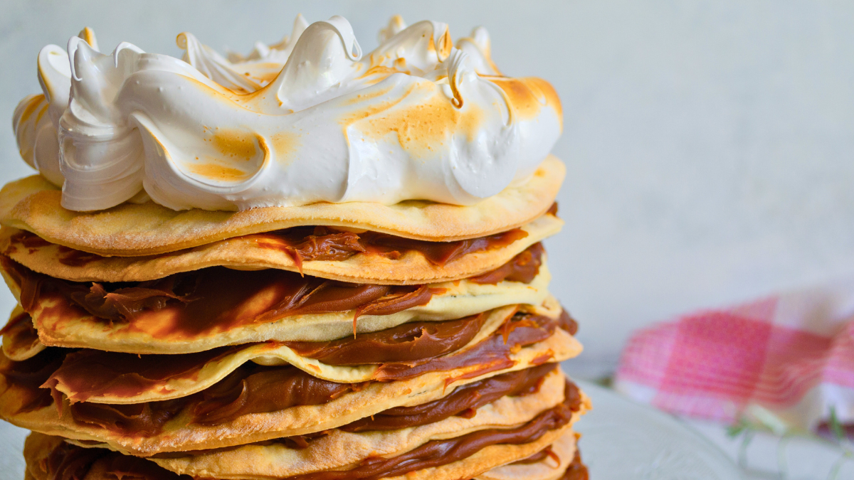 Receta de Torta Rogel casera con capas crocantes, abundante dulce de leche y merengue suave, un clásico de la pastelería argentina ideal para celebraciones.