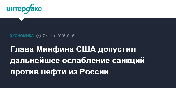 Для снижения напряженности на нефтяном рынке Вашингтон может принять решение о дальнейшем ослаблении санкций против российской нефти, заявил глава Минфина США Скотт Бессент.