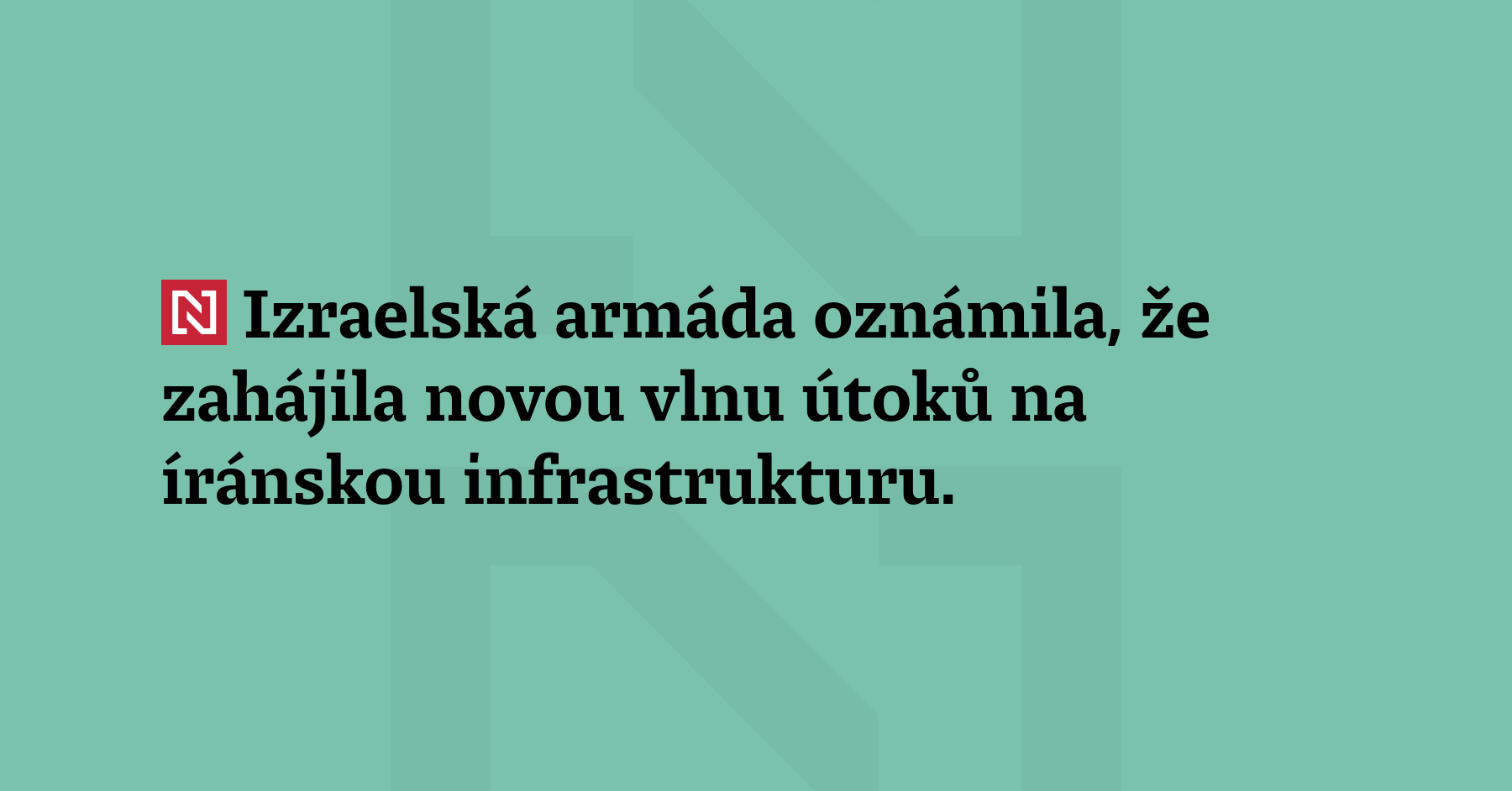 Izraelská armáda oznámila, že zahájila novou vlnu útoků na íránskou infrastrukturu. USA uvedly, že v prvním týdnu války proti Íránu zasáhly 3000 cílů. (BBC, ČTK)