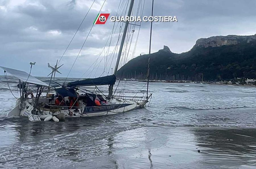 Barca a vela rompe gli ormeggi davanti al Poetto e finisce per arenarsi a pochi metri dalla battigia