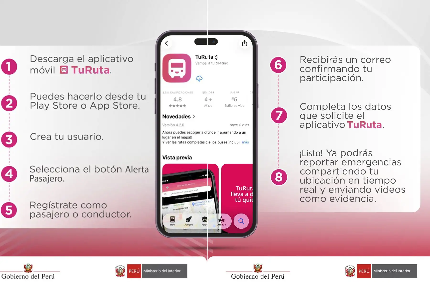 El Ministerio del Interior (Mininter) invita a los ciudadanos a participar en el plan piloto Alerta Pasajero, una herramienta innovadora que les permitirá dar aviso inmediato ante hechos delictivos o situaciones sospechosas en el transporte público a través de la aplicación móvil TuRuta. En una primera etapa solo pueden participar los usuarios del distrito de San Juan de Lurigancho (SJL).