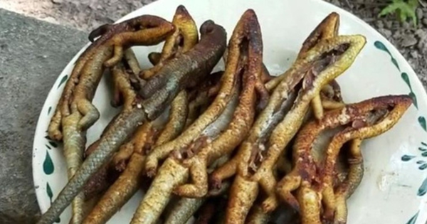 Loài vật này trông như rắn nhưng lại có 4 chân khiến nhiều người e dè mỗi khi bắt gặp trong bụi rậm nhưng nay nhiều người sành ăn bắt về làm thịt đãi khách.