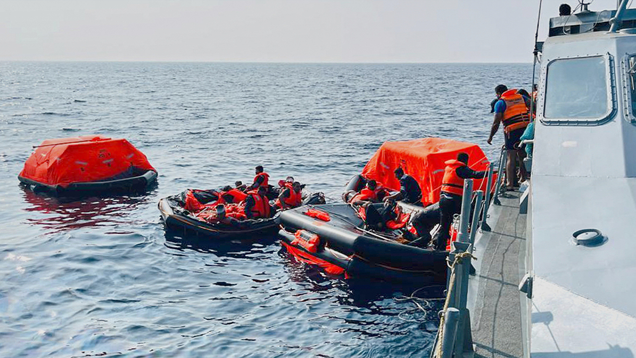 ▲ 스리랑카 해군 선원들이 스리랑카 영해 밖에서 침몰한 이란 선원들을 IRIS 데나함에서 구출하고 있다.스리랑카 정부가 자국 인근 공…