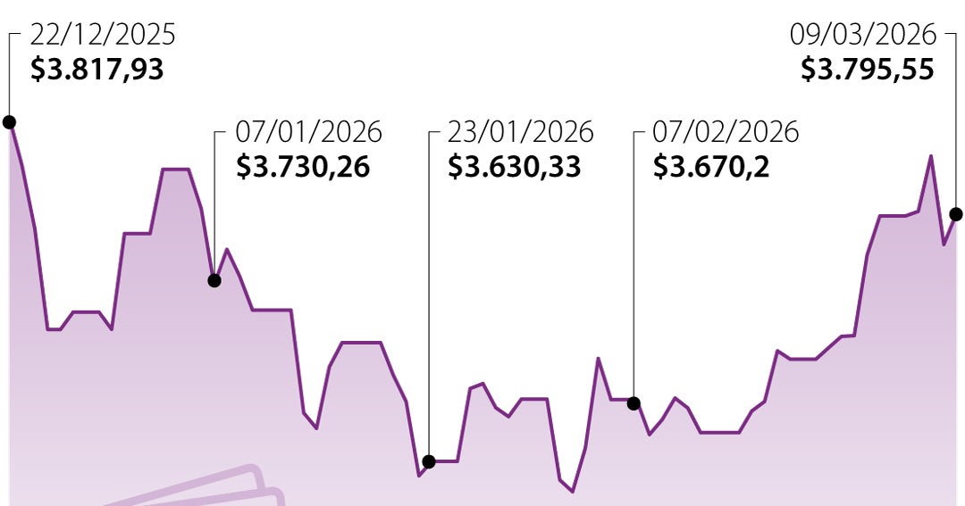 En medio de su volatilidad, la divisa tocó un mínimo de $3.770 pero también alcanzó un máximo de hasta $3.807,40. En diciembre llegó a cotizar en $3.810 antes de volver a caer