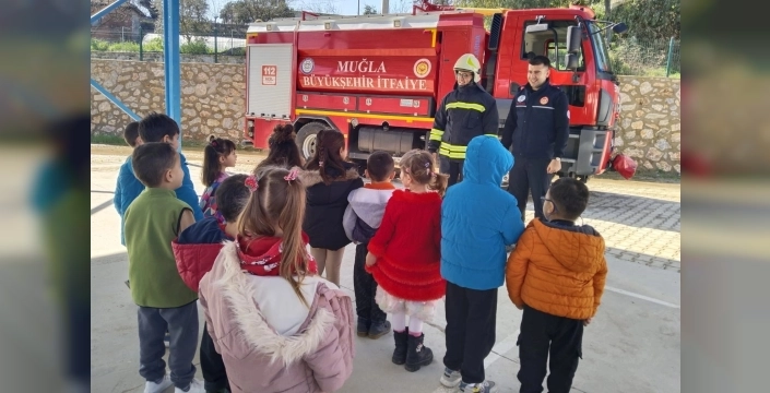 Muğla Büyükşehir Belediyesi, Ula Kızılyaka İlköğretim Okulu'nda minik öğrencilere yangın güvenliği ve acil durumlar hakkında bilgilendirme eğitimi verdi.