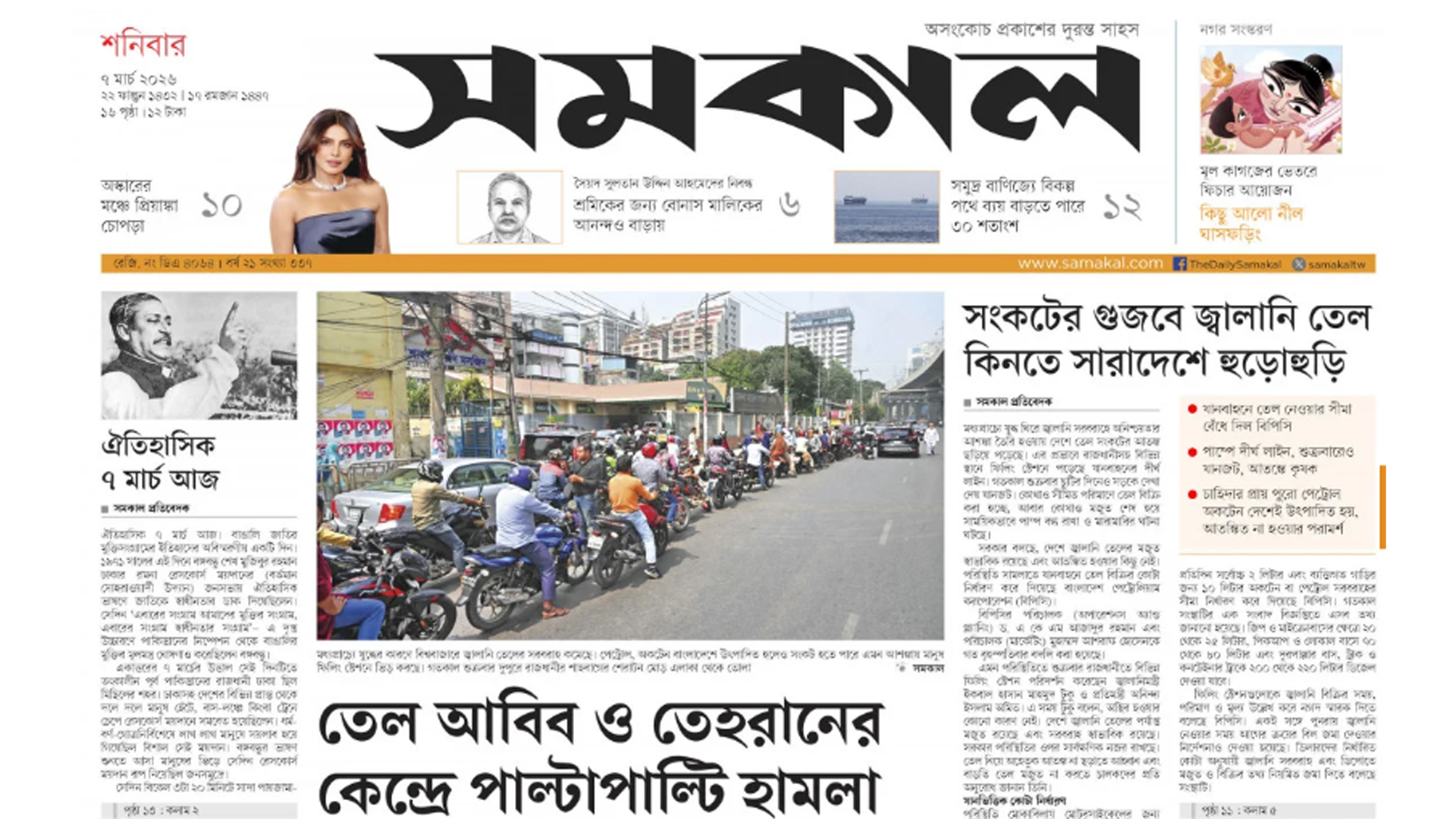 প্রতিদিন পাঠকের কাছে দেশের আলোচিত ঘটনা, রাজনৈতিক উত্তাপ, অর্থনৈতিক পরিস্থিতি, সমাজের পরিবর্তন এবং বিশ্বমঞ্চের নতুন বার্তা তুলে ধরে সংবাদপত্রগুলো। তথ্যপিপাসুদের তথ্যের চাহিদা মেটাতে সময় সংবাদ দেশের প্রধান প্রধান সংবাদপত্রের গুরুত্বপূর্ণ শিরোনাম পাঠকের সামনে তুলে ধরছে। এক নজরে জেনে নিন দেশের প্রধান সংবাদপত্রগুলোর প্রতিবেদন।দেশের শীর্ষস্থানীয় জাতীয় পত্রিকায় শনিবার (৭ মার্চ) প্রকাশিত কিছু খবর নিচে তুলে ধরা হলো।জ্বালানির পর এবার সারেও বিপাকে পড়ছে বাংলাদেশ— বণিক বার্তার প্রধান সংবাদ এটি।এই খবরে বলা হয়েছে, গ্যাস সংকট মোকাবেলায় দেশের পাঁচটি সার কারখানা বন্ধ রাখা হয়েছে। যদিও দেশীয় উৎপাদনে মোট চাহিদার সামান্য অংশ পূরণ হয়।তার ওপর কারখানাগুলো বন্ধ থাকায় আমদানির ওপর নির্ভরতা আরো বেড়ে যাওয়ার আশঙ্কা তৈরি হয়েছে।কিন্তু বৈশ্বিক বাজারে সারের প্রধান কাঁচামাল গ্যাসের সরবরাহ সংকট, মূল্য ওঠানামা, জাহাজ সংকট, পরিবহন ভাড়া বৃদ্ধি এবং প্রিমিয়াম চার্জ বাড়ার কারণে আন্তর্জাতিক সারের বাজারে বড় ধরনের অনিশ্চয়তা দেখা দিয়েছে।এ পরিস্থিতি দীর্ঘায়িত হলে বাংলাদেশকে সার আমদানিতে বড় ধরনের চ্যালেঞ্জের মুখে পড়তে হতে পারে।এতে কৃষি উৎপাদন ও খাদ্যনিরাপত্তার ওপরও চাপ তৈরি হওয়ার আশঙ্কা রয়েছে বলে মনে করছেন কৃষি অর্থনীতিবিদরা।এদিকে, কৃষি মন্ত্রণালয়ের কর্মকর্তারা দাবি করছেন, ২০২৫-২৬ অর্থবছরে মধ্যপ্রাচ্য থেকে যে পরিমাণ সার আমদানি করার কথা তার পুরোটাই দেশে এসেছে। ফলে চলমান বোরো মৌসুম সামাল দেয়ার মতো পর্যাপ্ত সারের মজুদ রয়েছে।তবে দীর্ঘমেয়াদে সারের বাজারে অচলাবস্থা থাকলে দেশে বড় ধরনের প্রভাব পড়ার বিষয়টি অস্বীকার করেননি তারা। দ্য বিজনেস স্ট্যান্ডার্ডের প্রধান শিরোনাম— Soudi visa curbs cut Bangladeshi jobs, war adds worries; অর্থাৎ ভিসা কড়াকড়িতে সৌদিতে চাকরির সুযোগ কমছে বাংলাদেশিদের, যুদ্ধ আরও বাড়িয়েছে উদ্বেগ। এই খবরে বলা হচ্ছে, বিদেশে কাজের জন্য বাংলাদেশিদের বড় গন্তব্যস্থল হচ্ছে সৌদি আরব। দেশটি থেকে আসে উল্লেখযোগ্য প্রবাসী আয়-ও।সৌদি আরবে গিয়ে প্রতিশ্রুতি অনুযায়ী চাকরি বা কাজের অনুমতি না পাওয়ার অভিযোগ যখন আসছে, তার মাঝেই দেশটি কর্মসংস্থান ভিসা প্রদান কঠোর করেছে।খাত সংশ্লিষ্টরা জানিয়েছেন, গত মাসে হাজার হাজার ভিসা আবেদন প্রত্যাখ্যান করেছে সৌদি আরবের মানবসম্পদ ও সামাজিক উন্নয়ন মন্ত্রণালয়। প্রকৃত চাহিদা ছাড়াই নিয়োগকর্তা জালিয়াতির মাধ্যমে শ্রমিক নিয়োগের ঘটনায় তারা এই পদক্ষেপ নিয়েছে।এ ধরনের পদক্ষেপ দেশের বৃহত্তম শ্রমবাজার সৌদি আরবে বাংলাদেশিদের যাওয়া কমে যাচ্ছে।জনশক্তি, কর্মসংস্থান ও প্রশিক্ষণ ব্যুরোর তথ্য অনুসারে, জানুয়ারির ত
