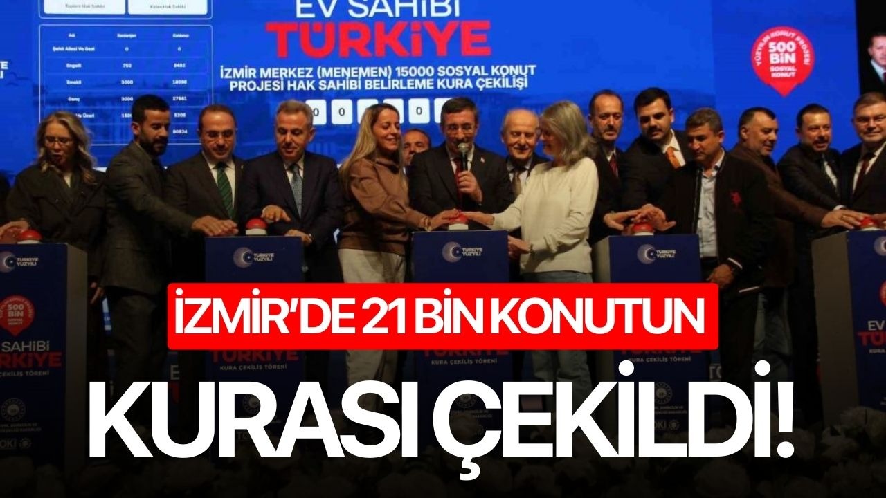Toplu Konut İdaresi Başkanlığı tarafından İzmir’de inşa edilecek 21 bin 20 sosyal konutun hak sahipleri kura çekimiyle belirlendi. Törene katılan Cumhurbaşkanı Yardımcısı Cevdet Yılmaz, kentteki riskli yapı stokuna dikkat çekerek, "Kentsel dönüşüm bir tercih değil, hayat kurtaran bir zorunluluktur" dedi.
